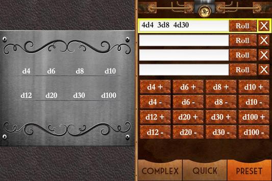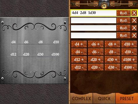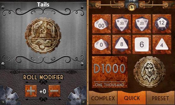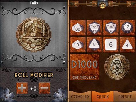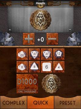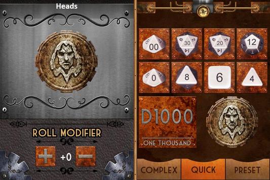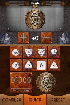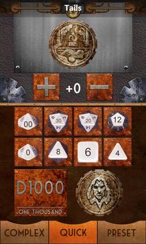 The Miracle Dice Roller is a dice roller application that substitutes for dice rolls however you might need them. Everything from standard single dice rolls, up to 1000% rolls, coin flips, four savable dice combinations and a display page to view each individual roll is included.