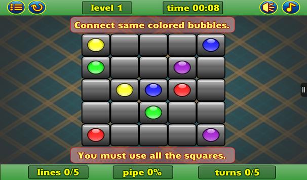 Match the same-colored bubbles and make sure to fill up all the blocks on the grid. There is a limited amount of moves, carefully move them and make sure not to overlap! Connect as fast as you can with the least number of moves! Chase the pipe and match the bubbles!