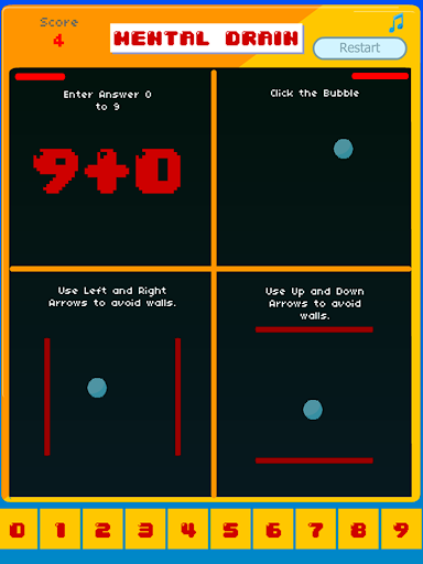 In this game you need to split your brain in 4, and run 4 tasks at the same time to make more points and keep playing!