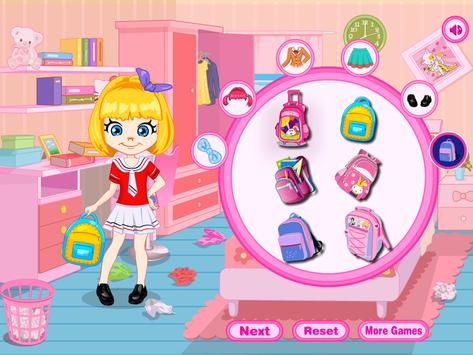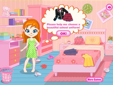 Cute Girl Ariana is a very good student. She wants you to choose her uniform for today. When she comes back from school, she has to do her homework and clean her room.