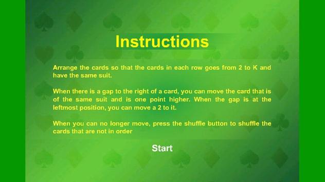 This easy game of ' Gaps Solitaire' is a super fun game that will make time fly! In this game you must arrange the cards so that the cards in each row are of the same suit and in ascending order from Two to King. When you discover there is a gap to the right of the card, you can move the card of the same suit.