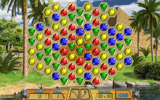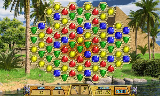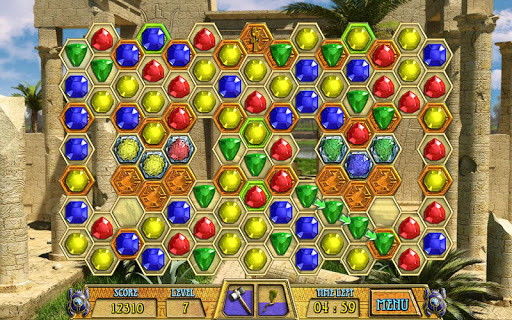 The game task is to destroy all stone tiles. Form the chain of three or more jewels of the same color by clicking at one figure and drag to other adjacent figures of the same color and all of them will disappear. If there is a stone tile under the figure from the chain it will be destroyed. Enjoy the excellent graphics, melodious music, numerous levels, and various unique fun bonuses in this terrific matching puzzle game!