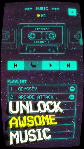 Retro 80’s graphics mixed with catchy original music creates a nostalgic shimmer in this old-school arcade game.