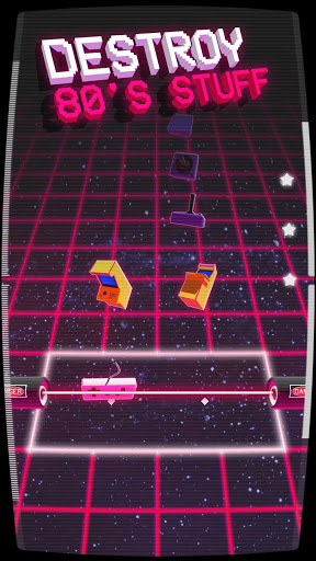 Massive wormholes have appeared throughout the universe. Via a time warp tunnel to the 80’s, thousands of objects from Earth has polluted space. With help of your thumbs (and lasers), you can help clean up space from from NES-controllers, Back to the future-shoes and digital watches.