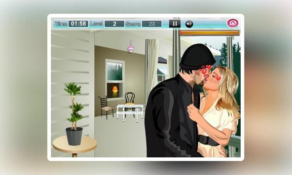 Meira wants to kiss her new boyfriend without being noticed by her ex-boyfriends. Help her to do so to fill the kissometer and earn score.