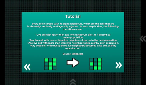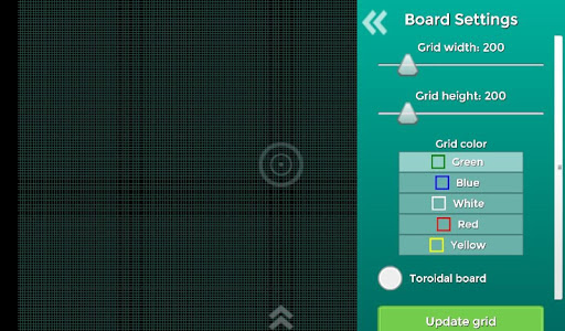 Check the pattern list, create your own patterns, play in a gigantic grid, change different values of the board and its options, and be free to observe how life grows just in front of you.