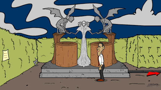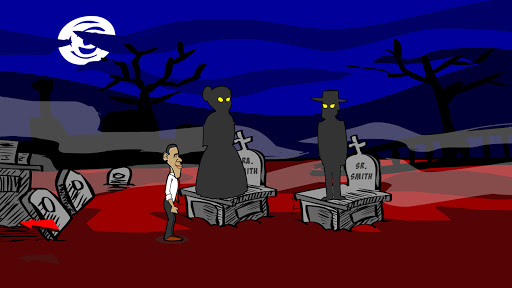 Obama has to fight against dark forces in a haunted cemetery, where a very powerful evil presence lurks. Help him solve this mystery safe and sound!