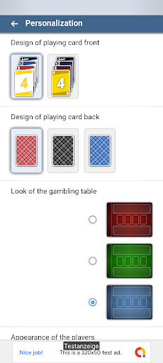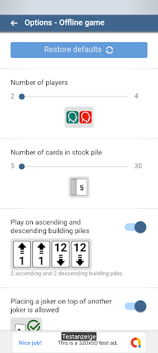 • Choose whether you want to play classic with «four ascending building piles» or with «two ascending and two descending building piles»