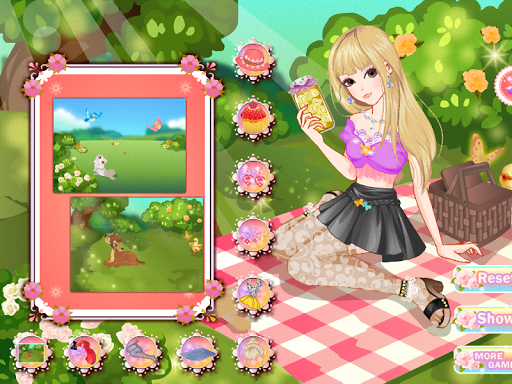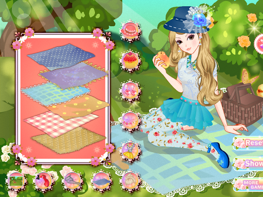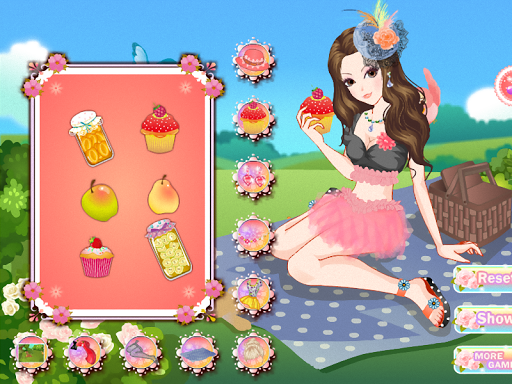 Hi, today is a beautiful summer day. The sun sends his rays upon everyone. In this kids game you will meet a girl who thought that this hot day is perfect for a picnic. You will need to help her to prepare the food basket but also to help her to dress up. First you have to choose the dress, shoes, accessories and not least the hat which protect her from the sun. Sure she will have a successful picnic.