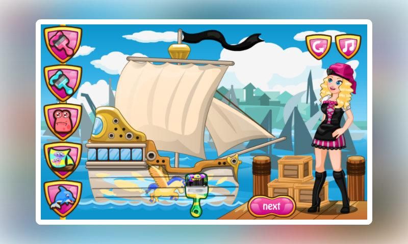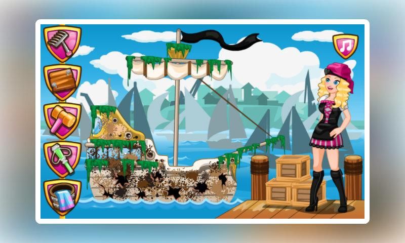 It's ship parade time! Gwen wants to show off her pirate ship, but it's very dirty right now. Help Gwen clean her pirate ship and decorate it!