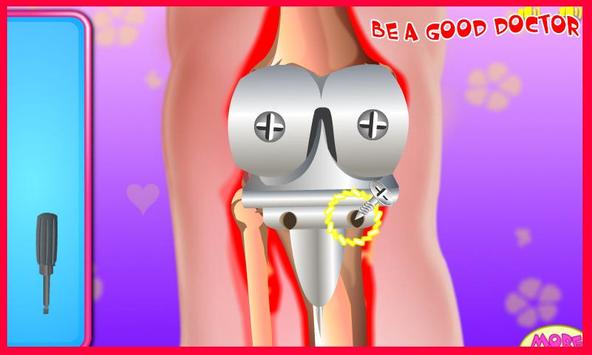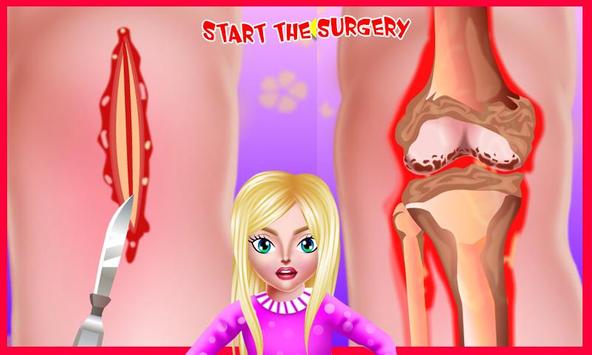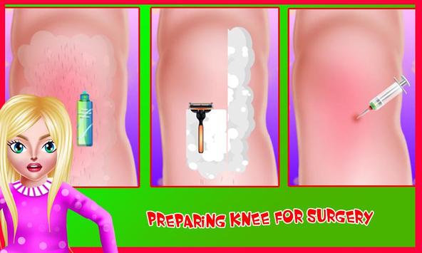 Start with knee surgery and use medical instruments to make it be a success! Descover all chalenges that the surgery requires and complete it as you know best. Finally, some time after surgery, you should apply some creams on her knee and then massage it untill she feels no pain and the scar dissapear.