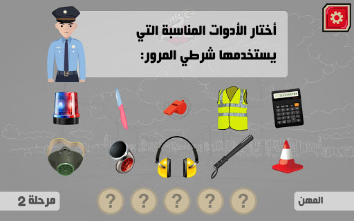 This game is one of the assessment games that aims to identify the tools that are used in a lot of crafts and vocations, when the player choose the appropriate tools for the craft, but if the player choose the wrong tool he will get a feedback to know which craft belongs to the tool.