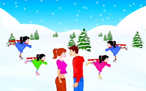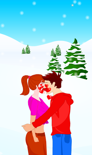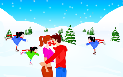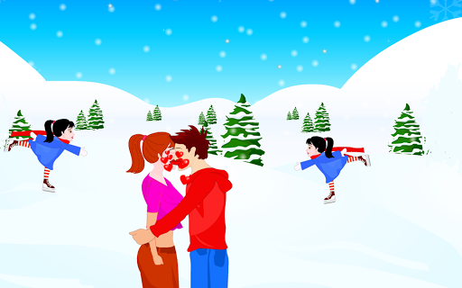 Its weekend and winter season, our two lovers go out to skate at the ground and as the time passes by and it’s time for them to return back home they feel like kissing each other while skating. Can you help these loving lovers kiss? Then go ahead play this app and help the two kiss each other and fill the love meter before the time runs out and move on to the further upcoming levels and capture the girl’s heart. There’re a lot intruders who can’t bear to see the two kiss at that moment a warning appears and you need to remain calm and wait till they move away from that location and then continue kissing and fill meter as soon as possible. Go ahead play this app and enjoy kissing! Have fun!