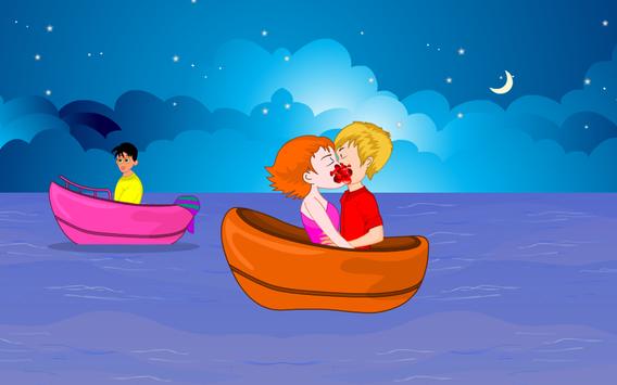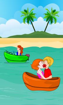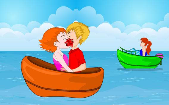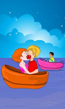 You and your girlfriend go for an outing alone. You’ll go for boating a long journey after a certain distance you’ll decide to kiss when no one is around. The app is about making them both kiss till the kiss meter rises and before the time runs out. There will be passer-by’s make sure they don’t watch you kissing. If they’re about to have a look on you two a warning will appear on the screen at that moment you need to stay calm and wait till they move away from that place. Go ahead play this fun app and enjoy.