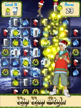 It has a super cool twist on the Santa theme also ! All the character heroes are dress up in hip hop costumes and santa make up . They look like they just pop out of the santa salon and right into this holidays app ! Swipe and match fruit candy and all the glow gems and jewels that you love to do ! Challenging obstacles for you to crush and pop along the way !