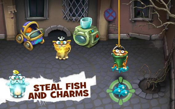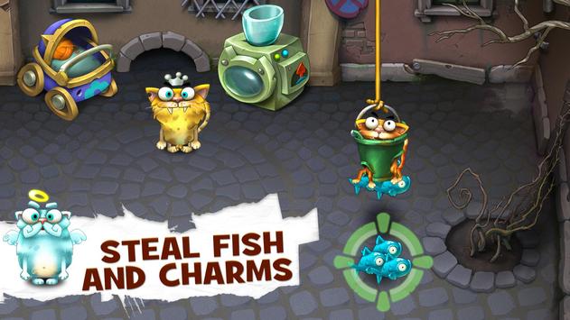 Watch the fur fly in backstreet battles as you plunder fish and charms from other clans. Retire to your base to feast on your bounty and nurture your cats back to health while you plot your next attack. Upgrade your furry minions to improve their individual skills. Collect and craft items to increase your clan’s power, and soon, you’ll be King of the Hill.