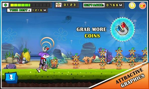 Shark boy is going through mysterious ocean with lots of killer enemies. Help him cross as much distance as he can to make a highscore. Collect Special powers like Coin Magnet or Shield to collect all the coins together or to destroy near enemies.