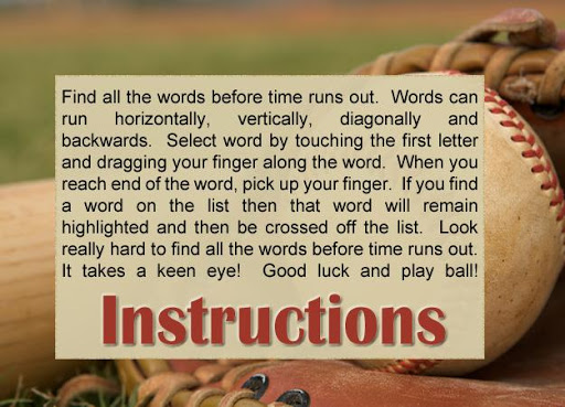 Find words like team, player, dug out, home run, double play, short stop, catcher, World Series!