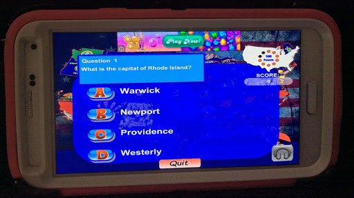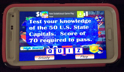 The Study Room in this game has flip flash cards with help with memorization of state capital cities as well flags of the 50 United States.