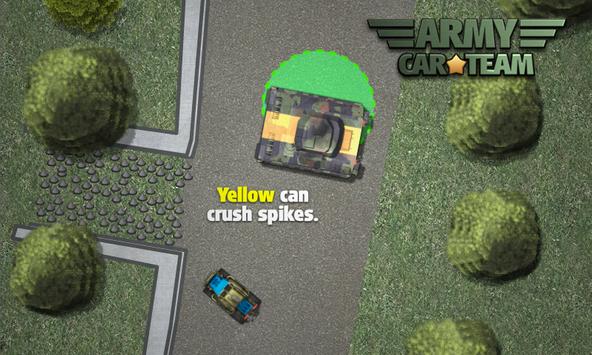 You are the commander of an elite platoon of three army cars, deployed on a series of exciting missions. Each with their own skills, these cars conquer difficult terrains and obstacles. Your squad uses team strategy to drive over pick up points, and capture flags. Can you lead your Army Car Team to victory?