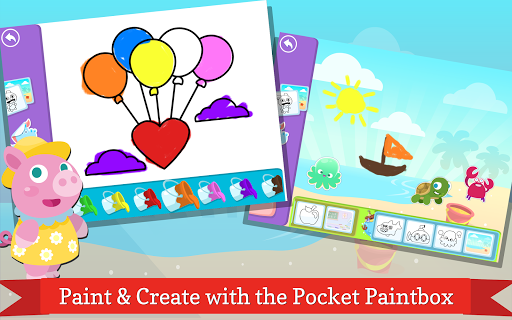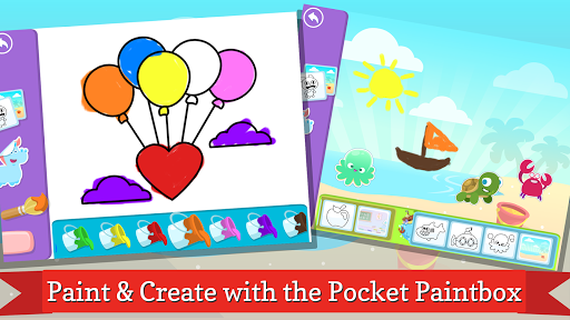 Have fun exploring different worlds and learning along the way! Your child will match shapes, count numbers, sort colors, and do much more! Feeling artistic? Play with stickers and freely draw and paint in our all-new Pocket Paintbox feature!