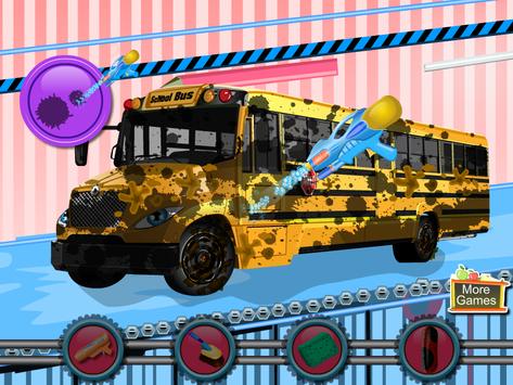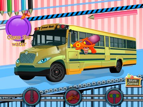 In this game you have to take home some kids from a very good school in our city. The bus arrived at the school and was ready to lead the students but also was also very dirty. We announced that we will be a bit late teacher and we went to wash the buses. I saw that there is no bus to wait in line so we have put forward and laundry employees started working. They watered the bus body with a strong jet of water, but then they were tired. So please you to keep washing the bus. You need to clean the wheels with a brush to remove dirt very strong need to clean it with a sponge full of foam and then to put a bus between rotating brushes to be washed. After the bus came from washing must apply a coat of wax to shine the bus. Thank you for your help.