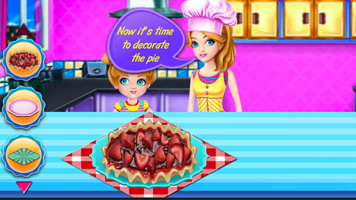 Get ready to join Amy and her mommy at the supermarket where she will buy all the ingredients for her famous Strawberry Pie. Drive back home quickly and give her a hand in the kitchen with cutting the strawberries, the pie filling and dough and of course nicely decorate it for everyone to see. But before starting to cook this delicious pie dress them up with the best looking apron and and chef hat.