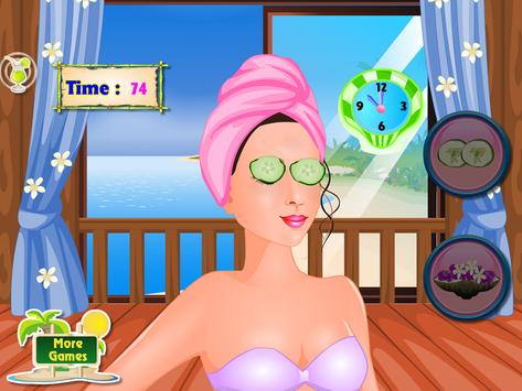 Shayna is crazy spa treatment, and likes to spend most of your time in beautiful places. Today she wants to maintain a spa session on the beach, but not only. In this game you have to help by Shayna to perform its task. First you must make them our friend invigorating bath to feel better and full of energy. Then you must take a back massage them and put them back some rocks that serve relaxing. Then must apply several layers of cream on the face to relax skin and to cleanse your skin and then rinse them well to face. In the last stage of the game have to dress Shayna, to choose an hairstyle, dress, accessories and a pair of shoes. Thanks you chose to help the Shayna and that you have chosen this game and invite you to choose and other games for girls in this developer to see if you can handle as well.