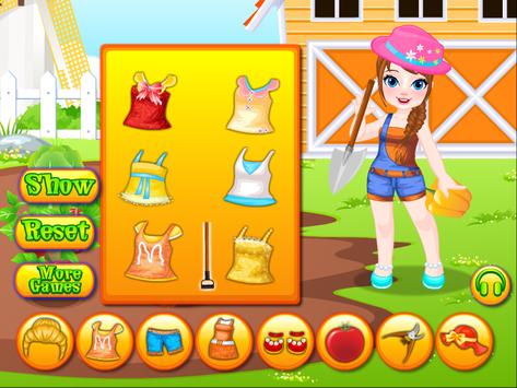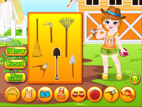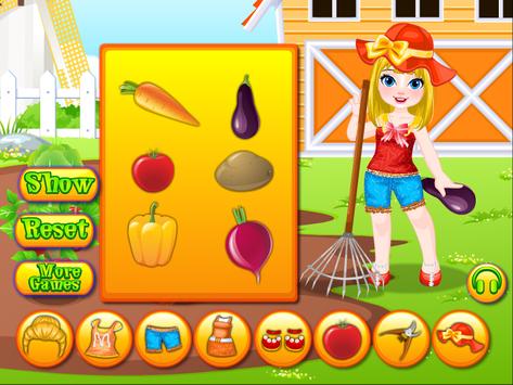 7) After you have completed field work will have to help her to dress. Choose the most suitable clothes for a day in the country. Finally you have to give a vegetable, as vegetables are her favorites and do not forget they are very healthy.