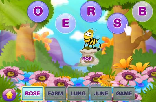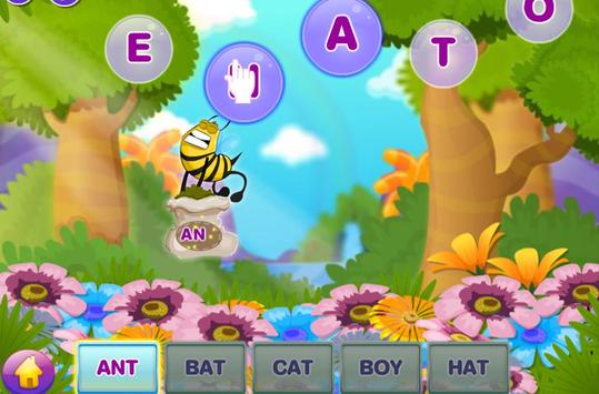 The bee is flying with a heavy bag, the kids need to make the word they see to make the bag more light for the bee. They can make the words with the letters in the bubble.