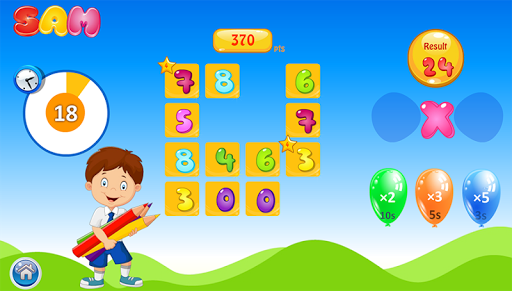 This game is intended for students under 10 (sub 10). The objective is to eliminate all numbers in the grid. In each step, click in two numbers following the operation indicated (subtraction, addition or multiplication) in order to obtain the result given.