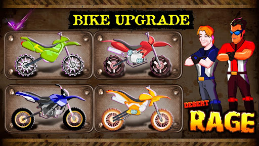 You are a desert rider. Ride your bike in the mountain terrain of desert without falling down. Collect coins to upgrade your bike. Avoid crash on the hills and dangerous obstacles. Play your game in two modes- (1) Normal mode and (2) Timer mode.