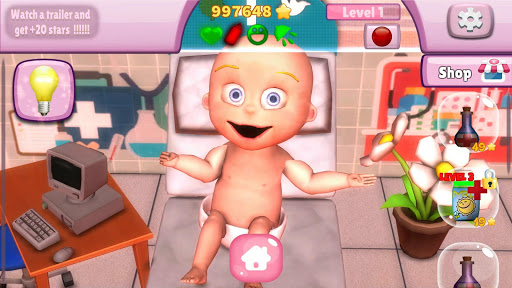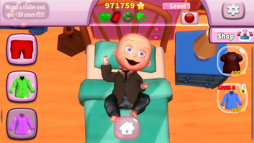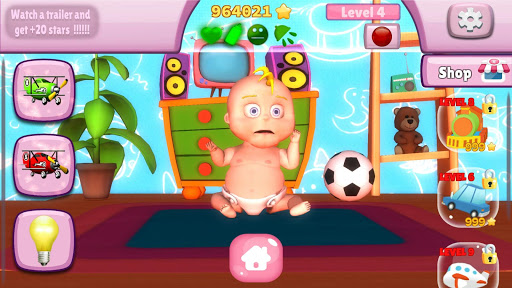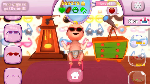 stars. Save them and you can buy clothes, toys, food... you will have the happiest baby in the world! play with your baby and watch it grow!
