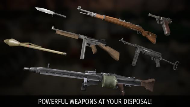 The weapons currently available in the game are Luger P08 pistol, Kar 98 rifle, MP 40 submachine gun, Thompson M1A1 submachine gun and MG 42 machinegun. More weapons will be added in the next updates.