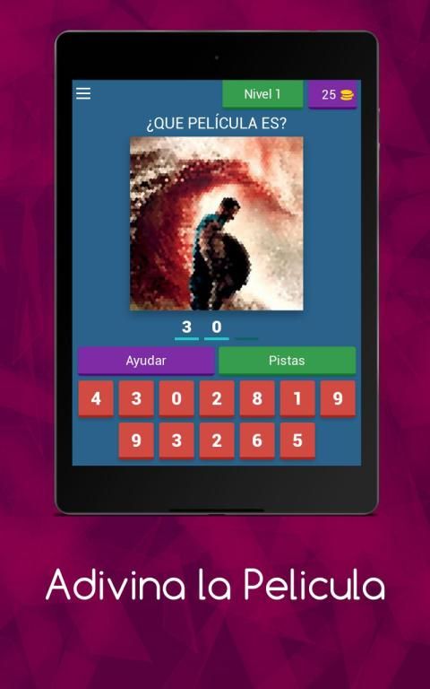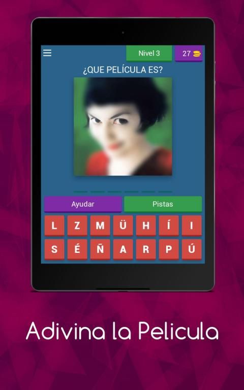 Solo si eres fanático del cine podrás resolver el juego "Adivina la Película", el juego cuenta con 98 niveles muy fáciles, por ejemplo: Esta la película TITANIC o el RESPLANDOR, etc