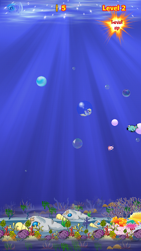 to adsorb and increase its score, however the water bubble should keep off the fishes, if not, it will die and its score and level will be restarted in next turn.