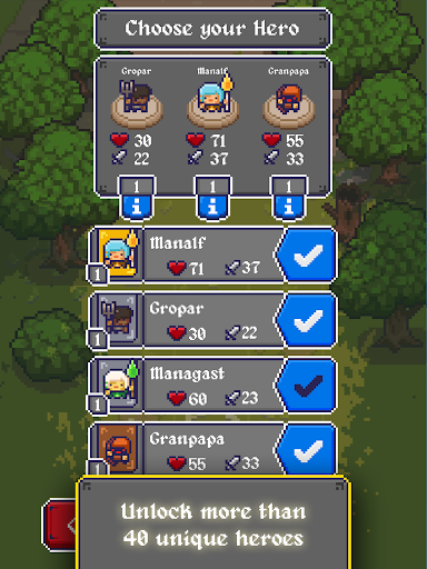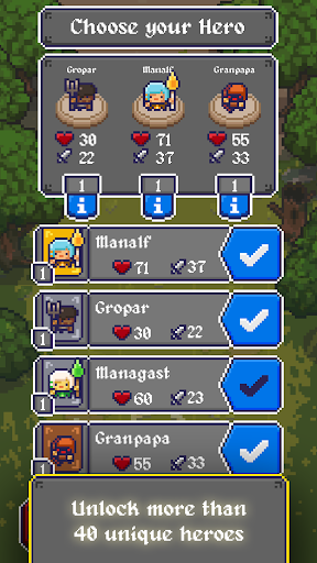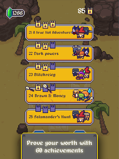 You, the King's Hand, should recruit a small group of fighters from twelve character classes: There are so many heroes to serve as cannon fodder for His Majesty's pleasure! Take advantage of everyone's strengths, move strategically on the field, collect all the items you find on your journey, put the bonuses you pick up in combat to good use and level up in this great adventure with its wacky and offbeat humor.