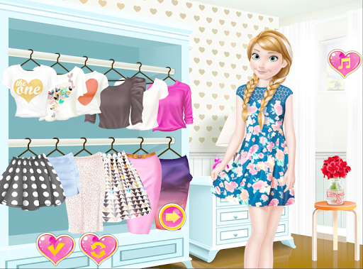 special romantic date. Join the great girl and help her choose a pretty outfit for the occasion in Anna In Love game, Anna loves great patterns and a good choice for her is a lovely red roses dress, which is super cute for hot summer days. Another nice idea is a hairdo with a bun and a cute soft braid. Choose a few accessories as well for the princess, such as girls games