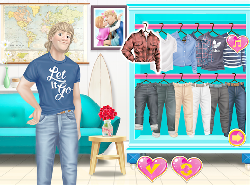 In anna in love game for girls you will get the amazing opportunity to choose a new outfit for the great , her boyfriend. He likes smart casual wear with jeans, a cute skirt and a nice hairstyle. Make sure he looks cute for their date and then choose a nice place to go to. Try a sea side date and make sure it goes great for the two love brids. Enjoy this amazing new