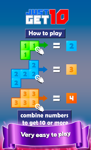Just Get 10 is the most addictive game of all, It's easy to play for everyone, however it could also drive genius crazy. Find the same number in colorful tiles and combine them to grow up.