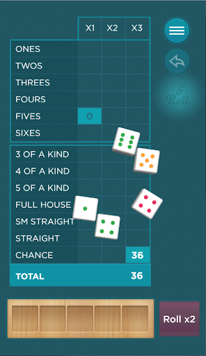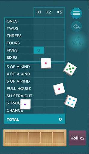 Roll the dice to move the ones you want to keep to the dice holder. After up to three rolls, click on the appropriate box on the Scorecard to score that round. Note that the second and third columns double and triple your score for that round. If all five dice are the same color, and you are willing to stop and score that round right away, you can roll a Multiplier Die that can really boost your score! The game ends when all of the scoring boxes are filled.