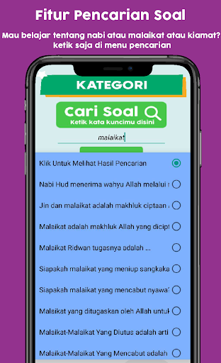 • Er is een zoekfunctie voor vragen op basis van trefwoorden ingevoerd door gebruikers. Met deze functie wordt verwacht dat gebruikers direct kunnen leren volgens het materiaal dat ze vandaag willen. Als de gebruiker bijvoorbeeld over Angels wil leren, typt u gebruikers alleen het trefwoord "engel" in de kolom Search, er zullen verschillende keuzes zijn van vragen die het woord engelen erin bevatten, en de gebruiker kan direct vragen selecteren en beantwoorden.