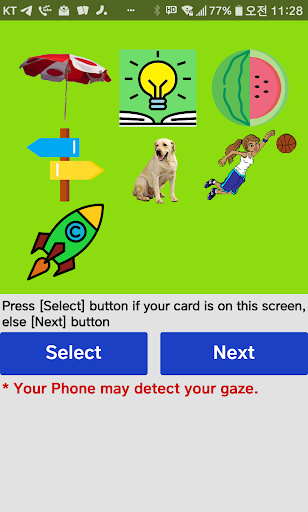 2. Display seven cards on the screen and ask if there is one card you remembered, and choose which group your card belongs to.