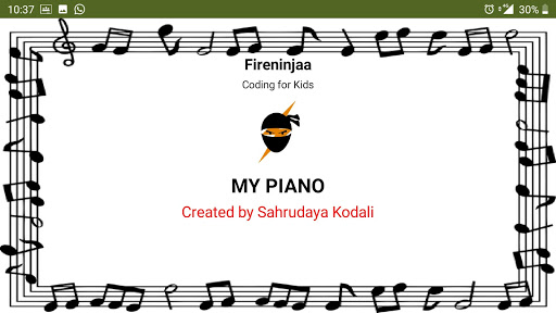A simple piano introduction app which kindles interest in kids to play the piano. Some simple tunes like twinkle twinkle and jingle bell notes are also added in the app to make it more interesting for the kids. This app is developed by Sahrudaya Kodali, a student of Fireninjaa Tech, Coding for Kids.