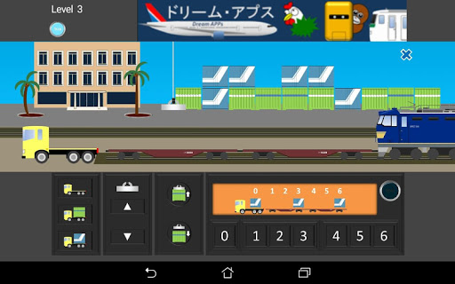 When the containers are placed as shown on the panel, the container train departs.Then player’s level increases by 1.