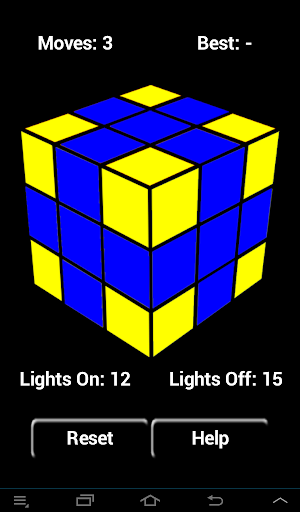 3) Lights Off Cubed - Similar to Lights Off, but it takes place on three faces of a 3x3x3 cube! Using the rules of Lights Off (see above), try to turn off all 27 lights in the fewest moves!