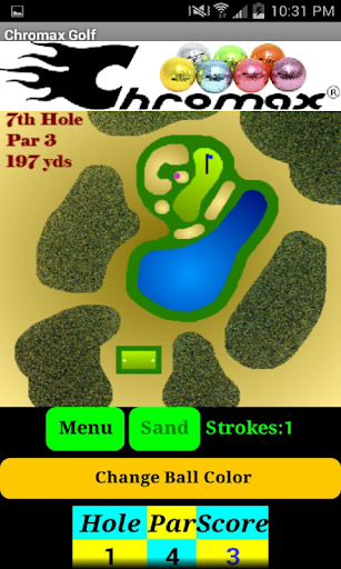 Play a round on 18 holes and find out if your game is up to par (or below it). This arcade style golf game will bring the golden age of gaming to your fingertips. Don't get too nostalgic though because this course is filled with rough, trees, sand traps, and water hazards to challenge you. An addicting game that's enjoyable for all ages and ability levels. Pro Golf Game: Chromax will automatically save your 3 lowest rounds so you can challenge your friends, coworkers, golf buddies, and old man par! You can select and change your ball color which is inspired by Chromax high visibility golf balls! The course features 2 distinct nines. The front nine is set in the desert with tight fairways and small greens. This nine puts a premium on accuracy and not distance. The back nine features wide fairways, massive hazards and generous greens. Opportunities to both score and get in trouble are plentiful. Check out the video tutorial to speed up the learning process and put your name at the top of the leaderboard!