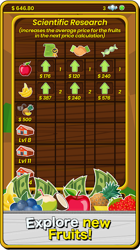 - Upgrade fields, and do scientific research in the laboratory to improve your fruits.