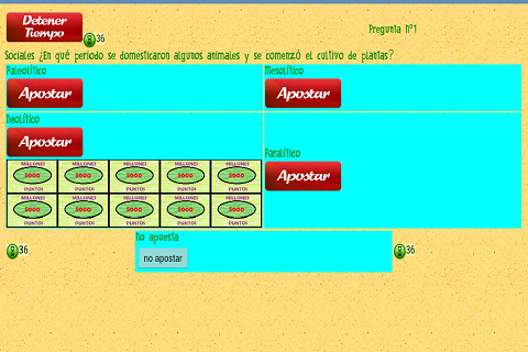 Se trata de preguntas tipo test con 4 opciones y sólo una correcta, lo que aciertes lo multiplicas, lo que equivocas lo pierdes y lo que no apuestas lo conservas. ¡Procura apostar más rápido y consigue el millon de puntos!