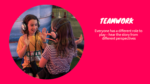 Kids/families play together in small groups using simple, accessible household items (blankets, cushions, chairs etc) to create the imagined story world. Each player will need a mobile device and a pair of headphones as each player hears the story from their characters point of view. Players then follow along with the story, playing out the action as instructed through the audio.